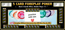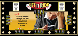 A fun spin on the popular texas hold’em game makes contestants re-bet during each round of the hand known as the flop, turn, and river. We like to relate this to taking more and more risks as you become more and more sexually active.